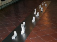 Da Storia… nasce Cosa, mostra collettiva d'arteQuali luoghi viviamo e come li abitiamo? Ce lo racconta l'arte, ricordandoci il valore della memoria collettiva e visiva. Un'interessante iniziativa pone al centro della riflessione e del dibattito il tema del ricordo e dell'identità dei luoghi: un'esposizione di artisti italiani e stranieri, composta da sezioni di video arte, fotografia, scultura, pittura e disegno ricostruisce, almeno idealmente, il passato del teatro San Domenico di Crema, inaugurato nel 1999. Collocato nel cuore del centro storico, entro un complesso architettonico e culturale di grande significato, il Teatro ha origini antichissime e trova sede in un'ex chiesa trecentesca. Fracesca Crocetti ci segnala la manifestazione d'arte che ricrea le molteplici conformazioni e i ruoli che lo spazio cremasco ha vissuto nel tempo. Il lavoro, esposto fino al 20 febbraio, è composto da una serie di calchi in gesso dei piedi di una donna che, progressivamente, avanzano nell'atto di camminare. Alcuni di essi sono parzialmente danneggiati e distrutti e assumono l'aspetto di ruderi archeologici, fino a ridursi ad un cumulo di macerie.