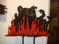 Infernali meraviglie della natura – Tra le varie opere esposte spicca l'opera presentata da Pietro Tenconi, Vice Presidente Vicario della pro Loco di Gallarate, intitolata 'Evoluzioni infernali': un scultura di legno rappresenta bestie infernali che tentano di azzannarsi tra di loro; una contorsione di forme appena riconoscibili dotate di occhi sanguinosi e bloccate da fiamme infernali in ferro battuto attraggono lo spettatore per la forza espressiva e la carica inventiva non priva di morale: "prestando attenzione a tutti gli episodi di cronaca nera degli ultimi anni mi sono accorto che i peccati dell'Inferno di Dante appaiono superati, quasi ridicoli – afferma l'artista – ormai gli uomini sono diventati come cannibali e animali. Per questo motivo ho voluto creare quest'opera, che rappresenta un inferno in cui gli uomini sono diventate figure animalesche e senza scrupoli, che tentano di divorarsi tra loro". Da molti anni Pietro Tenconi si dedica alla scultura, anche se lui preferisce definirsi un "ricercatore delle meraviglie della natura"; i suoi interventi sul legno infatti sono spesso minimi, egli preferisce ricercare negli elementi naturali, in preferenza radici e pietre, forme che il tempo crea e modella spontaneamente.