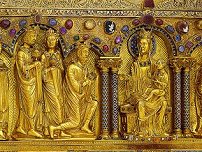 I lavori al sontuoso reliquiario si prolungarono lungo un arco di tempo piuttosto dilatato, dagli anni ottanta del XII e i primi vent'anni del XIII secolo. Questo gioiello artistico, costituito da un nucleo in legno di quercia, è realizzato in oro e argento, gemme e cammei, pietre preziose. Il programma di immagini ripercorre la storia della salvezza dall'inizio del tempo fino al giorno del giudizio. Oggi sorge dietro l'altare medievale, formando il centro della cattedrale gotica, costruito a sua volta come un "reliquiario" di pietra.