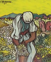 La mostra copre un ampio arco cronologico, dal 1991 al 2006 per un totale di 25 opre, scelte fra la vasta produzione dell'artista. In particolare sono previste tre sezioni, la prima dedicata al mondo contadino, che vede protagonisti le genti impegnate nei lavori agicoli. Fra le opere esposte si segnalano "La Fede perduta", "La Rossa di sera", "Il Canto dei grilli", "Il Raccoglitore di zafferano". La seconda sezione si concentra sull'arte sacra, con opere quali "I Magi", "L'Ultima Cena", "Il Buon Pastore" e "Sul Golgota", mentre l'ultima è dedicata agli animali, ad esempio "Combattimento di galli", "Bove che scende la china".