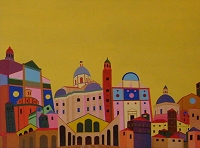 I soggetti sono diversi, ma ricorrono spesso le architetture, moderne o meno, create attraverso l'accostamento di forti cromie a campiture piatte. Alcuni quadri sono in particolare dedicati allo stile romanico, nelle sue varianti francesi o italiane. Monumenti famosi dell'antico periodo si affiancano alle strutture più moderne creando così un contrasto particolare.