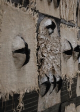Un'altro particolare del Grande VoloTerra di Puglia – In mostra a Lugano, da martedì 19, si potranno ammirare le sue creazioni. Un'occasione importante nata dalla conoscenza con il direttore della UBS svizzera. E' stato il responsabile dell'istituto bancario a chiedere a Penna di esporre in una delle sue filiali, dopo aver visto alcune opere esposte nel giardino di una villa a Fagnano Olona. La mostra comprenderà grandi installazioni. Una, la più grande, composta di quattro pannelli, è "il grande volo", relizzato con brandelli di tessuto e gommepiume. Un binomio bianco-nero, chiaro-scuro, che ritorna nella produzione dell'artista. "E' un lavoro che mi riporta indietro nel tempo, alla mia infanzia" ci dice Raffaele "sono tante rondini che volano e mi fanno ripensare al passato trascorso nella mia terra natale in compagnia di mia nonna e dei miei affetti". Le parti nere che emergono dal fondo trapassano la tela grezza e fuoriescono dal bidimensionale attraverso delle lacerazioni per trovare il loro giusto spazio in questo cielo effimero. Una sorta di spazio ordinato che si contrappone al caos contemporaneo. "La rondine è davvero l'animale che più mi ricorda il passato, il suo volo sembra essersi trasferito dai quartieri del sud fin dentro il mio studio", queste parole di Raffaele ci fanno capire fino a che punto entra in contatto con la sua arte. Un fare che parte dalla mente e arriva alla materia, passando per il cuore. L'immagine della calda terra di Puglia, che si snoda tra gli ulivi e le case bianche che sanno di mare, si sposta così nella ricca nazione elvetica.