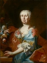 La moda femminile – Le donne di rango indossavano impegnativi abiti, di tradizione francese, come la Robe à la francaise, caratterizzata dalla presenza di estensioni laterali, che venivano sostenute da paniers, sottostrutture in giunco o metallo che potevano raggiungere dimensioni notevoli. Questi abiti risultavano così molto scomodi, poco funzionali e le dame dell'epoca, come si può ammirare ad esempio nei ritratti di Von Meytens, assumevano sempre una innaturale posizione eretta, a causa della presenza di stretti corpetti. Nell'opera esposta a Como, Madame De Allio indossa probabilmente un vestito alla francese, impreziosito da un drappo rosso che cade morbido sulle spalle e da fiori acconciati sul petto. Le maniche sono ornate da merletti: indumenti maschili e femminili facevano largo uso di pizzi. Molto ambite erano le opere delle merlettaie del Belgio e della Francia, che tentavano di soddisfare i capricci delle dame.