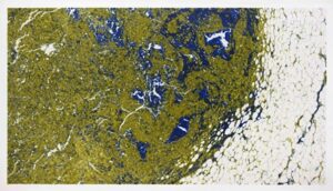 Affidandosi all’uso del microscopio elettronico Aldo Salucci (nato a Roma ma attualmente vive e lavora a Milano) utilizzando materiali e reagenti chimici ha dato vita a opere dove l’infinito e il finito si compenetrano creando spazialità i cui rimandi portano all’origine del mondo, quando il magma materico lasciava presagire una globale germinazione di vita.