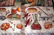 Molto interessanti i rimandi iconografici che emergono analizzando nel dettaglio le raffigurazioni: la presenza del sale sulla tavola dell'Ultima Cena ricorda il compito evangelizzatore a cui gli apostoli e di conseguenza i cristiani sono chiamati nell'alleanza eterna con Cristo; le ciliegie sparse sulla tavola prefigurano le gocce di sangue che Cristo dovrà presto versare sul legno della croce; mentre la presenza dei gamberi di fiume possiede anch'esso una valenza simbolica, per via dell'andatura a ritroso, in riferimento a chi si ritrae da Cristo, come gli eretici o come chi, simile a Giuda, è pronto a tradirlo.