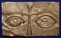 Placca votiva con croce a bracci espansi fra due occhi,VI-VII secolo, Città del Vaticano, Fabbrica di San Pietro