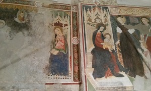 Nel corridoio che conduce alla cripta sono stati portati alla luce due affreschi prima sconosciuti, una Madonna con bambino ed un ex voto per la liberazione dalla prigionia raffigurante Vergine con bambino affiancata da Santa Caterina d'Alessandria e San Leonardo.