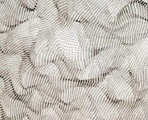 Negli anni Novanta proseguono i lavori realizzati con la china su carta, tela o plastiche ma cambia il modo di esporre l’opera: non è più posta sulla tradizionale struttura che regge la tela, ma appesa direttamente alla parete per sottolinearne la trasparenza.