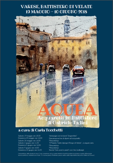 Ricca e originale la sequenza di eventi che accompagnano l’esposizione: sabato 19 maggio ore 18.30 il Vernissage in Battistero è con la band “Zingari felici”, domenica 20 maggio è prevista una dimostrazione live di dipinti ad acquarello, sabato 2 giugno alle ore 11.30 il Maestro Tadini dipingerà in diretta uno scorcio del Borgo di Velate, domenica 10 giugno alle ore 16.30 si chiude con il suggestivo recital di musica e poesia “Solo posti in piedi” del trio Lindbergh.