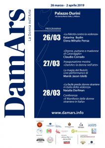 Milano – «DamArs: la Donna nell’Arte. Donna come artista, musa, autrice, vittima e carnefice». La Mostra d’arte contemporanea che s’inaugura stasera, 27 marzo, visibile fino al 2 aprile nel prestigioso Palazzo Durini in via Santa Maria Valle 2, è dedicata alla lotta alla violenza contro le donne.
