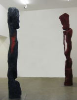 Un particolare dell'allestimento della mostra di SilverAllestita in due distinti spazi della Galleria Suzy Shammah la personale di Daniel Silver propone nel primo, due forme totemiche in legno che arrivano a sfiorarne il soffitto, nell'altro una serie di busti in gesso e marmo accanto a forme ovali in bronzo.