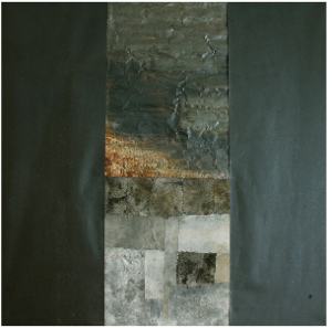 Nelle composizioni si intrecciano dialoghi di tassellature, si creano giustapposizioni, incastri di tessuti, legni e metalli, plastica e asfalto liquido dove gli effetti prodotti dalla fisicità dei materiali vissuti si sposano con le atmosfere cromatiche stemperate in vaporosità e addensamenti, squarciati da sprazzi di luce. Un linguaggio, il suo, sorretto dal gusto sicuro che guida le scelte di colore, nel colloquio dominante tra i bruni e i grigi; tra buio e luce, ombre e chiarori, in rapporti che possono esprimere anche tensioni plastiche e accennate profondità.