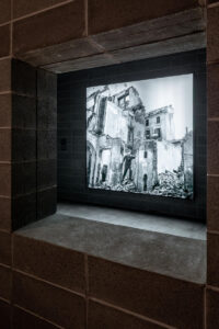 Il titolo, che richiama i classici resoconti bellici, introduce un’esperienza immersiva che attraversa secoli, geografie e linguaggi, unendo opere che dalla guerra traggono sconcerto, denuncia, speranza. Più di 2000 metri quadrati trasformati da 2050+, curatori e autori dell’allestimento insieme a Francesca Acquati, in un paesaggio emotivo fatto di muri prefabbricati in cemento – scenografia monocromatica che evoca macerie e case smembrate, ma anche la possibilità di una ricostruzione.