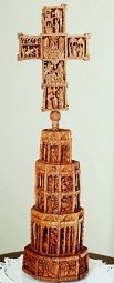 principali dell'Antico e Nuovo Testamento, rappresentati con incredibile precisione e raffinatezza. E' costituita da una parte superiore a forma di croce e da un piedistallo a sezione ottagonale, composto da uno zoccolo di base e da tre segmenti sovrapposti.