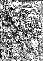 Frontespizio de L'ApocalisseIl tesoro nascosto – Nell'anno delle celebrazioni düreriane, non poteva mancare un omaggio milanese. Dopo le rassegne romane e veneziane, tocca ora alla Pinacoteca Ambrosiana, con una mostra numericamente contenuta ma ugualmente fascinosa. La rassegna espone 30 opere valorizzando il proprio "tesoro", abitualmente nascosto e difficilmente accessibile (al pubblico e agli studiosi): 14 disegni e 16 incisioni dedicate all'Apocalisse.