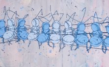un grattacielo, simpatica parodia della storica foto Lunch atop a Skyscraper del fotografo Charles Clyde Ebbets, che negli anni Trenta immortalò alcuni operai che pasteggiavano sospesi sulle impalcature del Rockefeller Center. "Nella mia testa – asserisce Pus – è diventato un pentagramma dove gli scarafaggi si orchestrano come note su uno spartito". Ecco allora undici blatte azzurrognole comodamente sedute su dei fili che si intersecano scandendo ritmicamente i piani della scena.