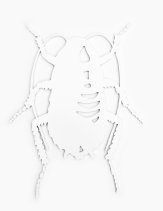 Ogni scarrafone è bello a mmamma sua recita ironicamente il titolo di questa personale che presenta al pubblico una ventina di opere realizzate attraverso l'uso della tecnica mista su legno o su tela. Niente bombolette spray, smalti, pantoni o rigidi stencil, solo docili sagome di carta, dipinte ad acrilico, pronte ad invadere le pareti ed a ricoprirle come una seconda pelle. Ma forse in pochi sanno che questo prolifico immaginario urbano è frutto di un lungo lavoro preparatorio, fatto di studi e progetti che risentono di una precedente formazione d'architetto. Il punto di partenza è "una situazione che mi racconto, una vicenda che poi, nel corso del lavoro, si modifica lentamente", plasmata da continui rimaneggiamenti narrativi e compositivi. Ne è una prova il Pranzo in cima a