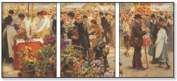 Il mercato dei fiori, con le viole, i gerani, le prime rose.