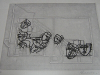 Un'altra opera dell'artistaOltre la realtà – I tenui colori ad acquerello contribuiscono a rendere diafana l'arcana atmosfera di queste composizioni. Abbandonata la via del realismo esse appaiono come una rivisitazione poetica della realtà: "non dipingo la realtà come appare, ma come la leggo io", trasfigurata, sezionata, abitata da presenze evanescenti dagli occhi tristi. Ad arricchire la mostra, inoltre, sono i "libretti" di poesie illustrati dall'artista con un altrettanto ricca varietà di soluzioni grafiche.