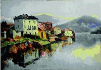 Un'opera di PetazziI paesaggi – Sfogliando il libro delle presenze all'ingresso del museo appare evidente l'apprezzamento del pubblico, e finora non è stato appuntato nessun commento negativo. Ad essere maggiormente ammirati sono i paesaggi, che costituiscono sicuramente il punto forte della mostra. Piace la variegata gamma cromatica, che non esclude nessun colore della tavolozza, e rende queste opere estremamente gradevoli all'occhio e piene di luce. La tecnica mossa, data dalla pennellata veloce che cerca di fissare l'impressione di un luogo, i tocchi di colore stesi in maniera corposa, quasi a macchie, comunicano una sensazione di freschezza ed esuberanza che mettono d'accordo tutti.