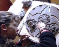 Elisabetta Pieroni al lavoroÈ proprio vero che per riuscire ad intravedere l'anima di una persona occorre vederla al lavoro. Poco importa se in un'officina, in un'aula universitaria o davanti ai fornelli. La concentrazione e l'impegno si rendono visibili nel volto e nel corpo impegnato e coinvolto nelle attività. Chi ha avuto la fortuna di vedere un artista al lavoro (si badi bene! Senza essere visto a sua volta) può comprendere bene questo: gli occhi e le mani sono calamitati sul mosaico, sulla scultura, sulla tela da colorare; la fronte a volte si distende soddisfatta e placata, a volte si corruga un po' e le braccia e le gambe sono colte da un fremito. In queste fredde giornate di dicembre incontriamo l'arte di Elisabetta Pieroni in alcune fotografie che la ritraggono al lavoro.