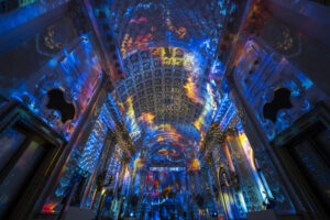 Puntando ad amplificare l’atmosfera e l’architettura esistenti, questo spettacolo innovativo fatto di proiezioni è adattato alle misure del soffitto, delle pareti, dei balconi e delle altre strutture presenti nell’edificio, utilizzando un modello 3D dello spazio creato da una scansione degli interni. In questo modo, ogni spettacolo rappresenta un’esperienza immersiva attentamente studiata e unica per la città.