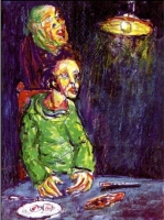 Un quadro di VanettiVanetti e il ritratto d'oggi – "Prevale nel messaggio di Vanetti la paura dell'ignoto, della instabilità e della solitudine che ci sono contingenti in ogni momento della nostra esistenza – e che inesorabilmente ci schiacciano in questa scacchiera fatta di giorni e di notti – sotto il peso di un enorme fardello intriso di iniquità e di ingiustizie sociali che il dilagare dell'egoismo più gretto rende invincibile – e proprio per questo – ancora più bruciante e crudele". Questa la presentazione scritta da Renato Valerio, critico e amico dell'artista. "Il nostro fu un breve incontro caratterizzato da una discussione fortemente critica sull'arte varesina", racconta Vanetti, "egli mi introdusse negli ambienti artistici nazionali ed internazionali e m'incoraggò a rimanere fedele alle intuizioni istintive che erano e sono tutt'ora, l'espressione più autentica del mio essere ancora un artista "randagio" e ramingo per il mondo. Solo così mi sento utile e vivo". Le opere dell'artista luinese nascono e crescono da un vissuto intenso, poggiano sui grandi maestri della storia dell'arte del secolo scorso, amano l'espressività dei volti. Attraversano il tempo dell'arte, immergendosi appieno nella realtà di un secolo più tardi, facendo leggere all'osservatore l'attualità dell'attimo presente.