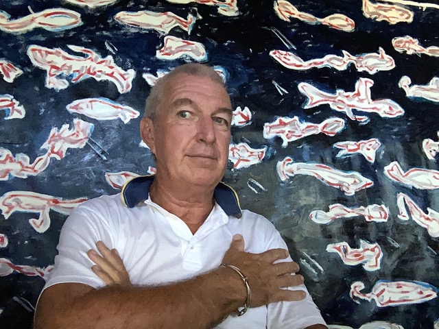“L’acquario” (2018, acrilico su tela) – ecco la metafora per un cielo, che protende all’infinito. Altresì il dipanarsi di una visione del mondo che richiama al paradiso terrestre, è un blu che va oltre il nostro universo. È un blu di un altro universo, di migliaia altri, infiniti universi” – commenta il critico d’arte Ernesto Malgarini.