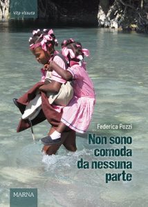 Ma come è strutturato il libro e perché il titolo “Non sono comoda da nessuna parte”? Federica ci racconta che il titolo si deve ad un episodio della sua infanzia, raccontatole dai genitori. All’età di 3 o 4 anni si trovava in campeggio con lo zio e quando lui trovava una sistemazione per risposare, prima un’amaca e poi una sdraio, lei la reclamava. I genitori le chiesero il motivo di quel gesto impertinente e lei rispose con la frase “Non sono comoda da nessuna parte”. Questa espressione racchiude la vita e il lavoro della coppia di sposi che alla comodità della vita occidentale ha preferito il viaggio alla scoperta di altre culture a cui destinare le proprie conoscenze e il proprio talento. Proprio l’incontro con gli altri è il filo conduttore del libro. Fin dalla copertina, dove vediamo una scena di vita quotidiana: la fotografia di due bambine che attraversano un corso d’acqua, l’una sulle spalle dell’altra. Gli altri sono raccontati attraverso scritti che coprono quasi un decennio: se i primi risalgono al 2009, gli ultimi sono del 2018. Sono stati elaborati nel corso degli anni per informare i propri cari della vita all’estero e non sono stati modificati nella struttura originaria. Con l’editore sono state costruite le prefazioni, redatte da Federica e Stefano, che legano gli scritti in termini geografici.