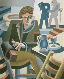 Tra i due fu subito “comprensione fraterna e profonda” e appunto l’invito a Capri dove Depero, con la sua energia fantasiosa, che del resto non mancava nemmeno a Clavel, lavorò febbrilmente per illustrare a carboncino la novella di quest’ultimo. Un istituto di suicidi, per ritrarlo in disegni o quadri coloratissimi ambientati sui gradini della Funicolare o al Fornillo e anche, attraverso fitte chiacchierate e discussioni, per dare concretezza ai Balli Plastici vagheggiati da Depero “milionario di fede, di entusiasmo e di fantasia” e sostenuti da Clavel “abbastanza ricco di mezzi (nasceva in una facoltosa famiglia svizzera) e di mente” che già fantasticava di suo su una “novella che si svolge in un’isola coperta da una flora irreale di cristallo dai colori incantevoli e cangianti”. (nella foto, Ritratto di Gilbert Clavel)