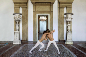 Inizialmente io e Roberto abbiamo fatto 4, 5 serie dei bambini partendo da foto come quella della bambina sul lago, dove c’erano veramente pochi elementi e spostandoci poi in location particolari come un palco del Teatro della Scala. Dopodiché comincia una serie che si chiama Evoluzione, in cui cominciamo a mettere più elementi e la sintesi del lavoro porta all’introduzione del movimento, come si vede in ‘Atto puro’ e ‘Atto violento’”.