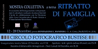Il volantino dell'eventoMostra di fine quadrimestre – Preparata durante i mesi autunnali, nei consueti incontri del lunedì, finalmente prende vita l'annuale mostra collettiva dei soci del Circolo Fotografico Bustese. L'esposizione natalizia ha luogo quest'anno negli spazi della Fondazione Bandera per l'Arte, in concomitanza con la mostra di Aldo Alberti inaugurata lo scorso 30 novembre. A scatenare la creatività dei fotografi è questa volta il tema "ritratto di famiglia", che permetterà a tutti di mettere in campo le nozioni di ritratto apprese durante le ultime lezioni organizzate dall'associazione durante gli incontri settimanali.