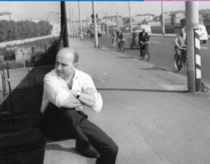 La mostra, in prevalenza fotografica è divisa in sezioni. Mi ha interessato quella intitolata “Città culla” legata a doppio filo a Il dio di Roserio e poi al ciclo de “I segreti di Milano”. Gli scatti fermano lo scrittore in maniche di camicia sul ponte della Ghisolfa e in via Mac Mahon, oppure mentre è in posa tra le case di ringhiera insieme a Franca Valeri, che nel 1960 aveva portato in scena per la prima volta “La Maria Brasca”. Sono i luoghi di periferia che la scrittura ha reso mitici, ma sono anche luoghi reali, a poca distanza da dove mi trovo, bastano poche fermate del treno che scorre a cento metri (ne avverto il passaggio), oppure pochi minuti di auto. Inedite, per quanto ne so, sono le fotografie di Renato Grignani e Giorgio Soavi che ci mostrano l’interno dell’atelier milanese del pittore Testori, situato al numero 8 di via Brera, vale a dire a pochi passi dalla Pinacoteca o dalla fucina di idee d’avanguardia che era allora il Bar Jamaica. Ho solo il tempo per ricordare di sfuggita la parte de “Le mie vacanze”, dove si scopre un Testori “montanaro, in compagnia delle sorelle, dei nipoti e degli amici.