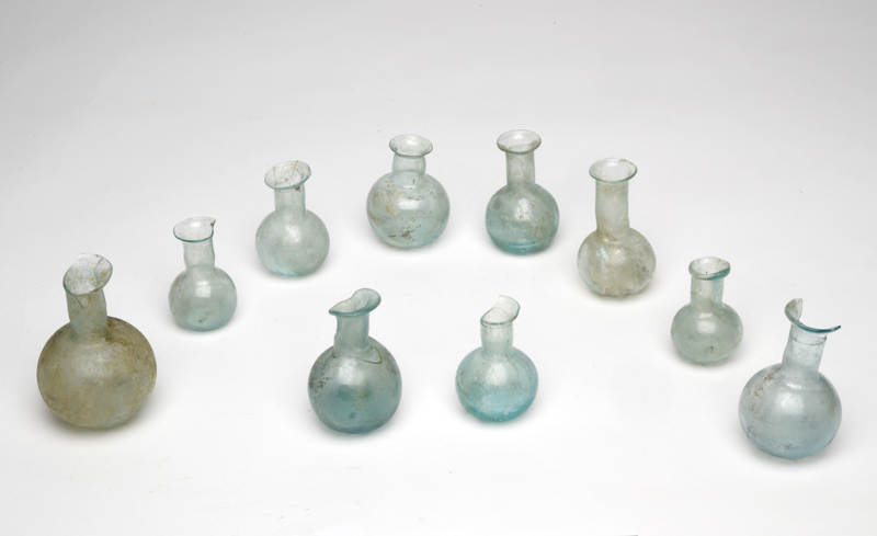 I corredi tombali comprendevano vasellame relativo al consumo di cibo e bevande, che rivestiva un ruolo importante nel corso delle cerimonie funebri, rasoi, specchi e balsamari in vetro destinati alla cura del corpo, monili per l’ornamento e utensili in ferro. Un particolare valore simbolico assumevano le lucerne, per contrastare le tenebre della morte e le monete, poste nella bocca o sugli occhi del defunto, così da garantirgli il passaggio alla vita ultraterrena.