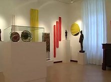 L'attesa di Arturo Martini si staglia contro le tinte purissime di un oblò di tela, il profilo scuro e netto di un San Sebastiano di Arturo Martini colloquia con i lumen aranciati e violacei, l'Urlo bronzeo di Carlo Pizzi richiama tanto Franz von Stuck quanto Adolfo Wildt e, intanto, torreggia tra i globi vitrei e gli shangai verticali, rossi e azzurri.