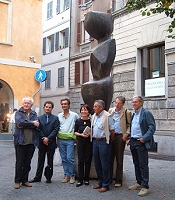 Foto di gruppo sotto il Totem di tavernariProspettiva aerea – Sia dall'alto delle finestre della galleria che successivamente in piazza, Vittorio Sgarbi si complimenta con le bellezze della nostra città. Corso Matteotti gli è proprio gradito; nota compiaciuto la finestra gotica nei pressi della Ghiggini e si avvicina curiosando dal portone chiuso dello stabile. Non manca anche un apprezzamento in volata al gallerista per la passione e il coraggio con cui mantiene viva la sua realtà.