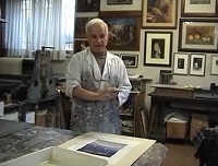 L'artista nello studio'Mani sante' – Mani lisce che hanno delicatamente, ma con gesti decisi, tolto il colore in eccesso sulla lastra. Sono quelle di Giancarlo Pozzi ripreso in un video nel suo laboratorio, immerso nei suoi attrezzi da lavoro, avvolto dalla particolare luce dell'ambiente creativo. L'artista è in questi giorni ospite negli spazi della Galleria Ghiggini di Varese con la mostra personale 'Collaborazioni d'autore'. Opere di grande interesse e nomi che hanno segnato la storia dell'arte dei giorni nostri si susseguono nella mostra. Il fascino dell'incisione, le particolarità e le difficoltà di questa forma d'arte vengono raccontate al pubblico in un incontro sabato 6 marzo proprio in galleria: gli ospiti avranno modo di osservare direttamente la realizzazione di un'incisione con torchio calcografico, ideata e creata dall'artista accompagnato dallo stampatore Roberto Giudici.