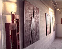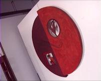 Allestimento della mostradel rosso che con gli anni si è progressivamente fatto più luminoso, fino a sfociare nel caldo dell'arancione, abbandonando quella pesante ombra sanguigna, come di sangue venoso, scuro e carico di anidride carbonica, per passare al fluido arterioso, carico di ossigeno, portatore di vita. La vita stessa in Castiglioni ricompare negli ultimi anni, oggettivizzata all'interno di una simbologia che comprende pezzi di realtà sintetizzati, che sfiorano il design, attaccati su pesanti tele a illustrare come exempla la particolare felicità di alcune intuizioni ed immagini ritrovate nel mondo.