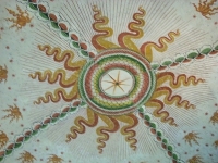 Un viaggio nel tempo – Per coloro che visitano in questi giorni il luogo hanno modo di compiere un viaggio attraverso la storia dell'arte, da quella dei tempi antichi fino ad esempi contemporanei. Si trovano infatti a dialogare le opere di Sandro Bardelli, pittore di Casalzuigno, con le decorazioni sopravvissute al tempo che impreziosiscono l'edificio. Puntando lo sguardo al cielo, infatti, è ancora ben visibile la decorazione che colora la volta del soffitto caratterizzata da un sole fiammato con scintille e stelle.
