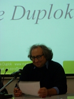 Presentazione della serataUn lavoro dopo l'altro – Nasce nel 2003 Mme Duplok, una storia relativamente breve ma affascinante e per certi aspetti divertente. Due relatori (non sono loro i Mme Duplok, hanno voluto sottolineare), hanno intrattenuto i giovani ripercorrendo per immagini i lavori realizzati in questi anni, accomunati da un forte legame con il pubblico. Proprio il tema dell'architettura e della public art è stata per la seconda serata al centro del dibattito.