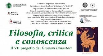 "Filosofia, critica e conoscenza". Questo il titolo scelto per la settima edizione del progetto dei Giovani Pensatori, promosso dall'Università dell'Insubria e diretto dal professor Fabio Minazzi.Un ricco programma di lezioni, laboratori e convegni pensati per studenti di tutte le età, dall'asilo fino all'università. Coinvolti anche i ragazzi diversamente abili.
