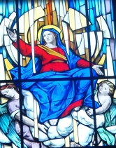 Infine, come ultima curiosità riguardo il dipinto della Beata Vergine Assunta, patrona principale di Casorate e a cui è tra l'altro dedicata la chiesa, c'è da riportare un ulteriore piacevole aneddoto: la raffigurazione presente nel lavoro del Ronchelli è stata infatti recentemente presa a modello per realizzare la luminosa vetrata posta nella finestra di facciata della chiesa. Nonostante lo stile volutamente più moderno dello sfondo, questa vetrata riesce a cogliere appieno lo spirito e l'essenza del messaggio che l'immagine originale vuole trasmettere, riproponendolo in quella meravigliosa, suggestiva e avvolgente luminosità che solo il fascino delle vetrate sa infondere.