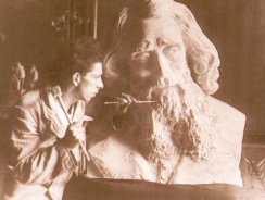 L'incarico per il busto fu affidato a Egidio Giovanola (1892-1960), giovane scultore milanese che trascorreva con la famiglia periodi di villeggiatura a Montegrino. Il Giovanola, nato ad Ala di Trento, aveva studiato presso l'Accademia delle Belle Arti a Bologna, poi si era diplomato a Brera nello stesso corso frequentato da Carlo Carrà e Felice Casorati e aveva ottenuto anche l'abilitazione all'insegnamento del disegno nel 1915.