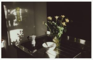 Le Polaroid, che non hanno possibilità alcuna di intervento prima e dopo lo scatto, riflettono le comunanze con il grande amico Luigi Ghirri (proprio una delle foto è a lui dedicata) e provengono da interni ed esterni di Milano, Berlino, Postsdam, posando lo sguardo sull’esserci delle cose, sulla memoria, i legami, gli oggetti più inerti e insignificanti in uno splendore di colori, una linea cha va da Kértesz a Ghirri.
