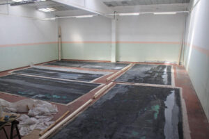 Frangi racconta la genesi del progetto come un ritorno fisico ed emotivo: dopo due decenni le grandi tele, conservate arrotolate su tubi di quattro metri, hanno “ripreso a respirare”. Rimontarle, spiega l’artista, è stato come riaccendere un dialogo con il tempo, un esercizio di memoria e di resilienza. “È una scommessa con il tempo che passa — afferma — un modo di mettersi alla prova e vedere l’effetto che fa”.