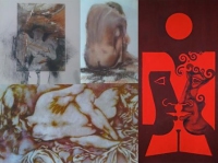 Locandina della mostragenerosamente mostra a più giovani allievi il cammino per arrivare all'opera compiuta. Al centro delle sue opere c'è sempre la figura femminile: la donna espressione di perfezione e bellezza, ma anche la donna-oggetto, la Grande madre e l'immagine sacra.