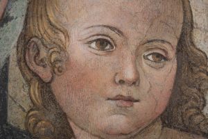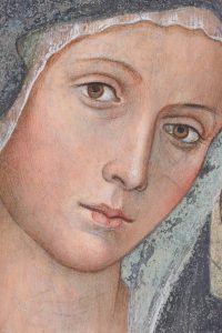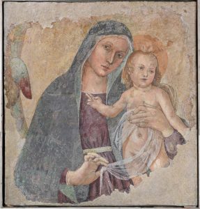 I due volti hanno una straordinaria forza comunicativa: l’amorevole sguardo della Madre Celeste, serenamente diretto verso i fedeli è come un invito alla preghiera in un raccolto e silenzioso dialogo; quello del Figlio sembra invece estendersi all’intera umanità in un simbolico abbraccio. Un frammento di affresco di grande importanza per Fede e Arte.