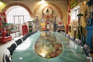 Il Museo vanta una collezione di cinquemila pezzi di archeologia industriale legati a tutto il mondo delle stazioni di benzina vintage, dal 1892 al 1990, con pompe di benzina, targhe, grafiche pubblicitarie, compressori, estintori, oliatori, attrezzi, gadget, giocattoli, progetti e fotografie: oggetti unici raccolti ad uno ad uno da Guido Fisogni e fedelmente restaurati con materiali e colori originali. La collezione di stazioni di benzina è la più completa al mondo, tanto da essere stata insignita nel 2001 del certificato Guinness World Records.
