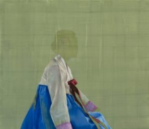 In mostra compaiono disegni che affigurano l’Hambok, abito che rappresenta l’identità e la cultura del suo paese dove a fronte dei colori degli indumenti, le figure appaiono minimamente accennate, quale ideale connubio tra la cultura orientale e occidentale.