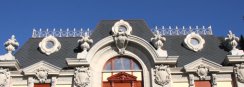 Ancora più sintomatica del suo stile è la distribuzione rigorosamente logica e, al contempo, estremamente misurata ed equilibrata degli elementi decorativi. Le linee curve del corpo centrale (portone, balcone e